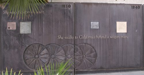 She is the recipient of five Honorary Doctorates by schools of Art and Design on both coasts. The AIGA Medal recognizes her exceptional achievement in the area of graphic design. In 1985, Sheila began her career in public art. Betye Saar and Sheila, neighbors and friends, each did works to commemorate Biddy Mason, the midwife and influential matriarch in the black community who lived at the site in the mid-nineteenth century. Betty Saar created the “House of the Open Hand’ her last public artwork, and Sheila created her first, “Biddy Mason: Time and Place,” an 82-foot-long mural. Sheila’s next site-specific project was in the old Little Tokyo neighborhood, “Omoide no Shotokyo” delivering the voices of four Japanese generations who lived and worked at that site in Los Angeles.