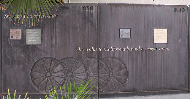 She is the recipient of five Honorary Doctorates by schools of Art and Design on both coasts. The AIGA Medal recognizes her exceptional achievement in the area of graphic design. In 1985, Sheila began her career in public art. Betye Saar and Sheila, neighbors and friends, each did works to commemorate Biddy Mason, the midwife and influential matriarch in the black community who lived at the site in the mid-nineteenth century. Betty Saar created the “House of the Open Hand’ her last public artwork, and Sheila created her first, “Biddy Mason: Time and Place,” an 82-foot-long mural. Sheila’s next site-specific project was in the old Little Tokyo neighborhood, “Omoide no Shotokyo” delivering the voices of four Japanese generations who lived and worked at that site in Los Angeles.